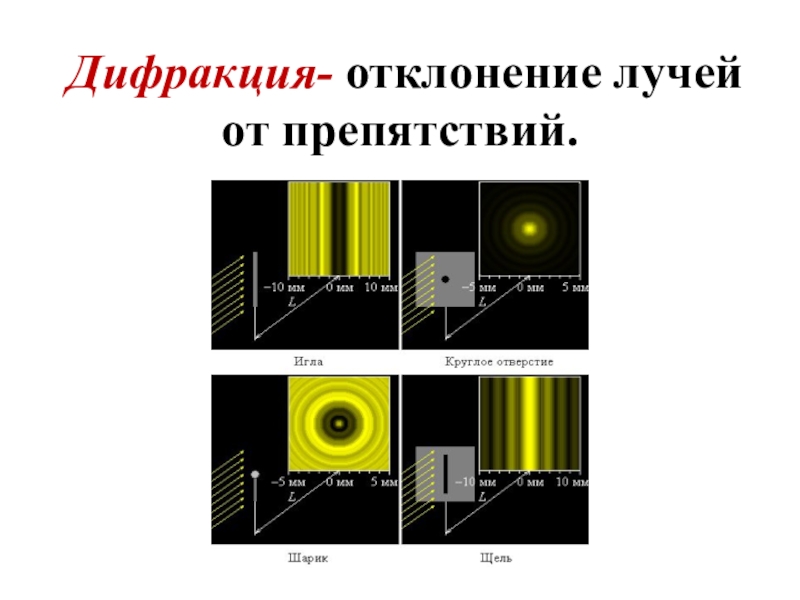 Слайд 33 Дифракция- отклонение лучей от препятствий.
