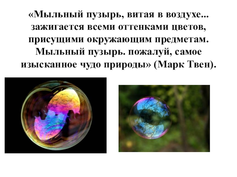предметам. Мыльный пузырь. пожалуй, самое изысканное чудо природы» (Марк Твен).