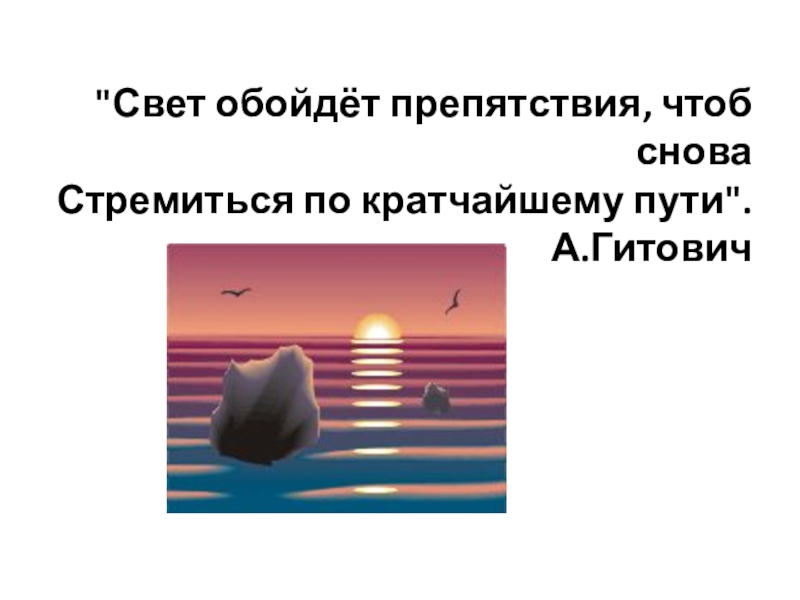 Слайд 32"Свет обойдёт препятствия, чтоб снова Стремиться по кратчайшему пути". А.Гитович