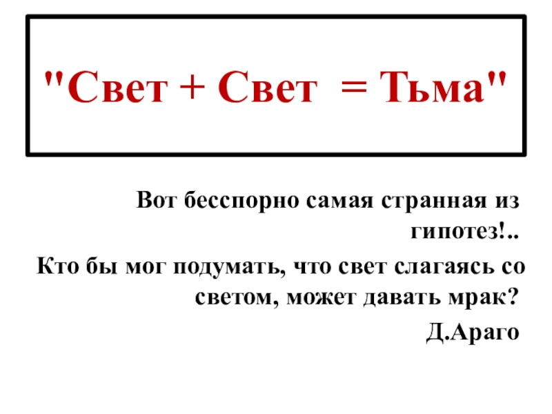 мог подумать, что свет слагаясь со светом, может давать мрак?