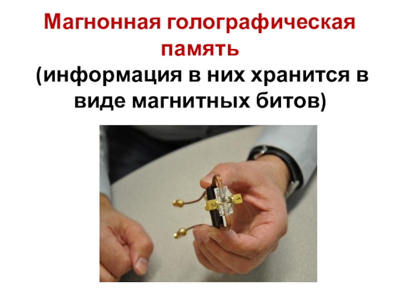 Слайд 30Магнонная голографическая память (информация в них хранится в виде магнитных битов)