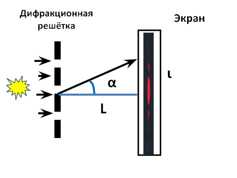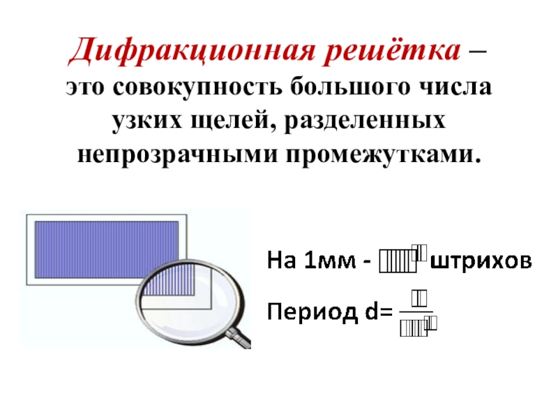 Слайд 36Дифракционная решётка – это совокупность большого числа узких щелей, разделенных непрозрачными