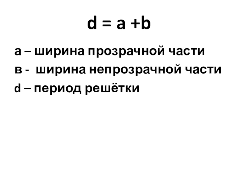d = a +bа – ширина прозрачной частив - ширина непрозрачной частиd – период решётки