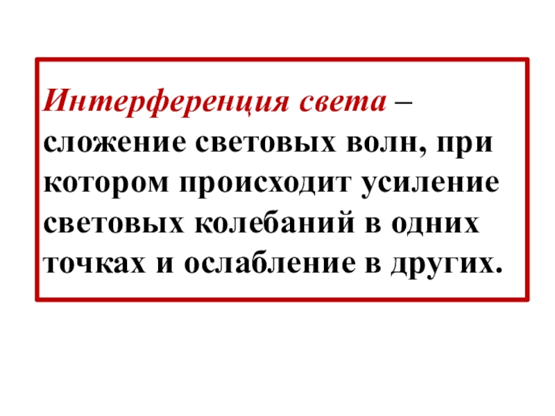 Слайд 8Интерференция света – сложение световых волн, при котором происходит усиление световых