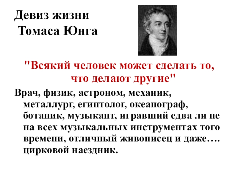 Слайд 15Девиз жизни Томаса Юнга