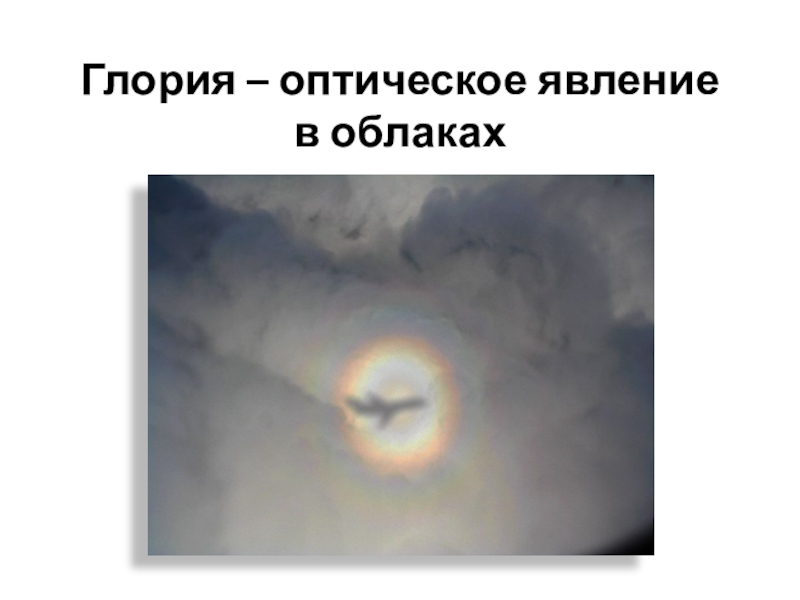 Слайд 59Глория – оптическое явление в облаках