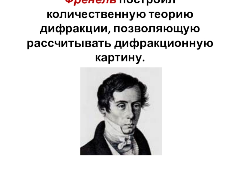 Слайд 35Френель построил количественную теорию дифракции, позволяющую рассчитывать дифракционную картину.