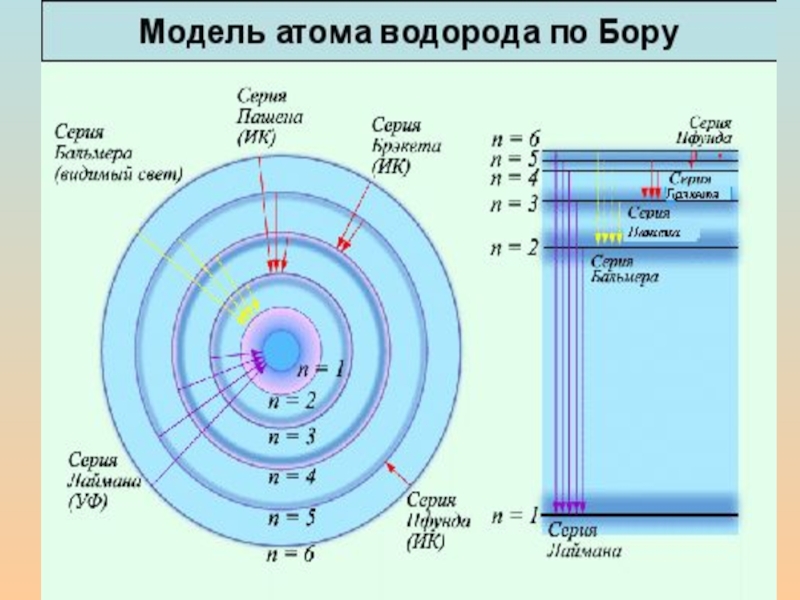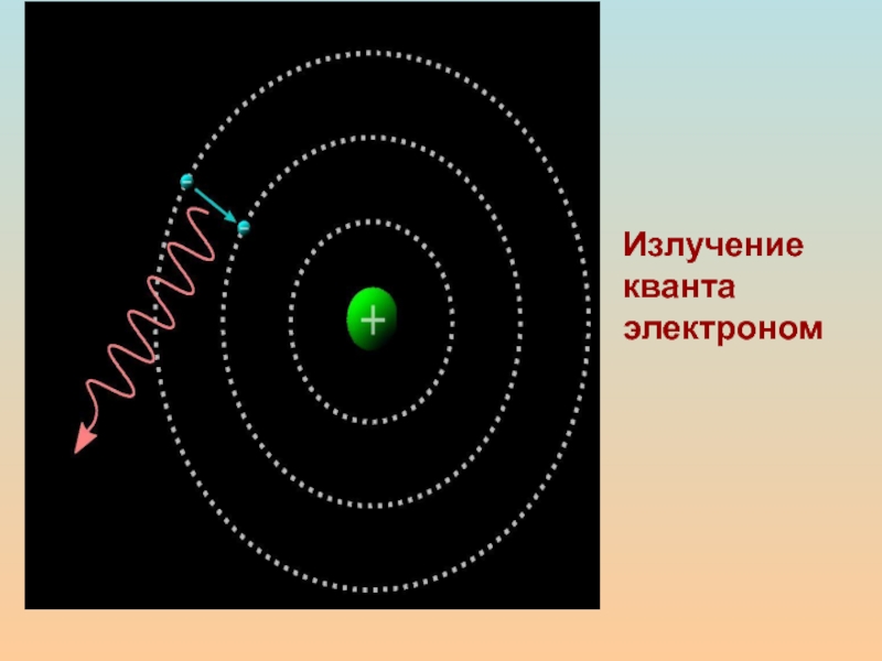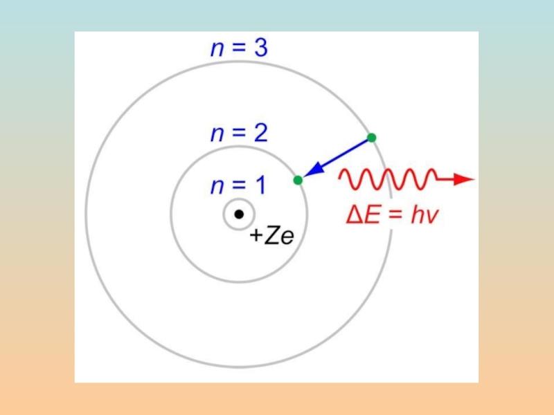 Постулаты БораЭлектроны в атоме движутся по стационарным орбитам,на которых они не излучают энергию.Электрон излучает энергию при переходе