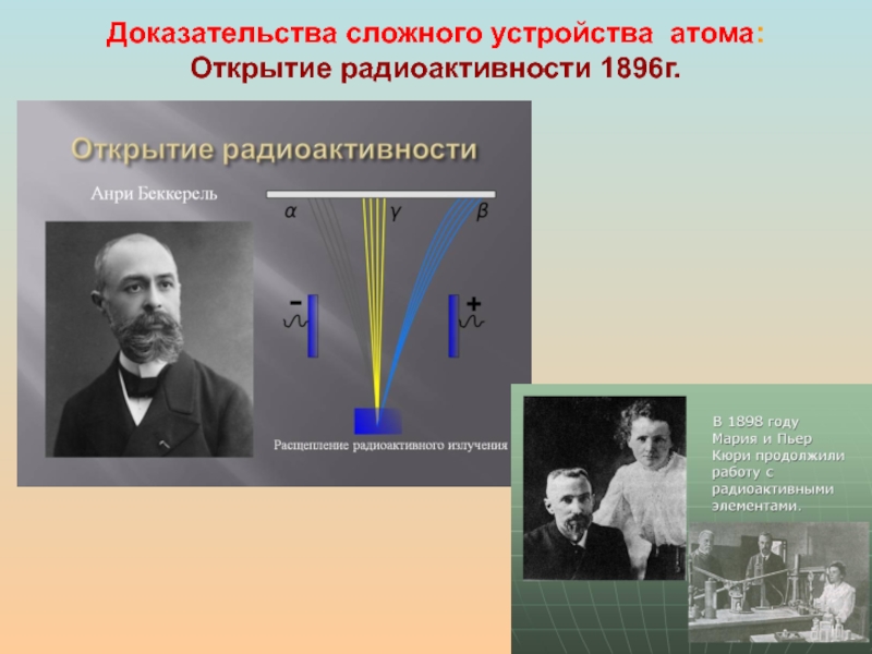 Слайд 4Доказательства сложного устройства атома: Открытие радиоактивности 1896г.