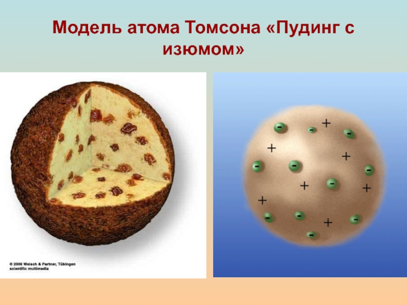 Слайд 8Модель атома Томсона «Пудинг с изюмом»