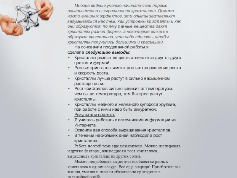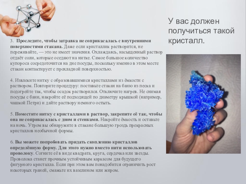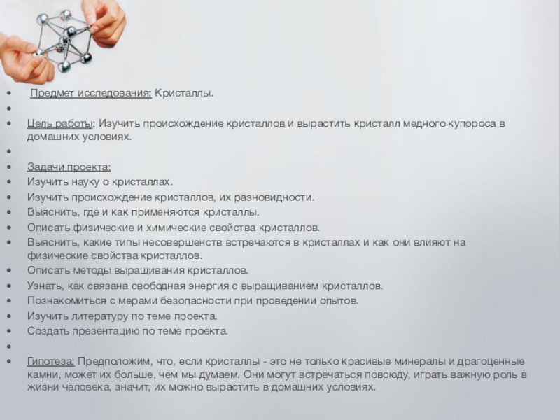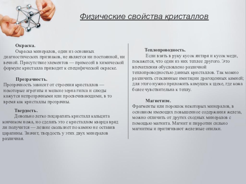 Кристаллы характеризуются наличием значительных сил межмолекулярного взаимодействия, вследствие чего они сохраняют постоянными не только свой объём, но и форму. Кристаллы различных веществ имеют различную форму.