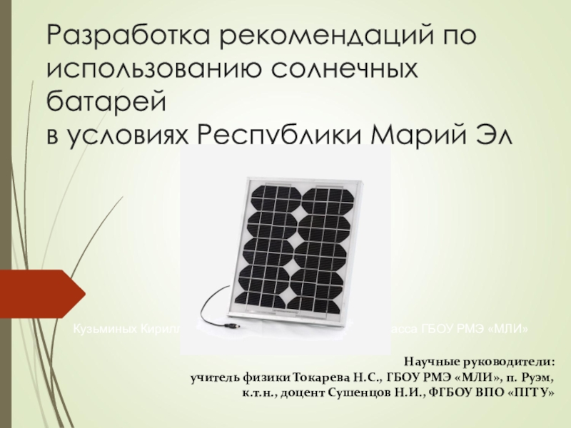 учитель физики Токарева Н.С., ГБОУ РМЭ «МЛИ», п. Руэм,