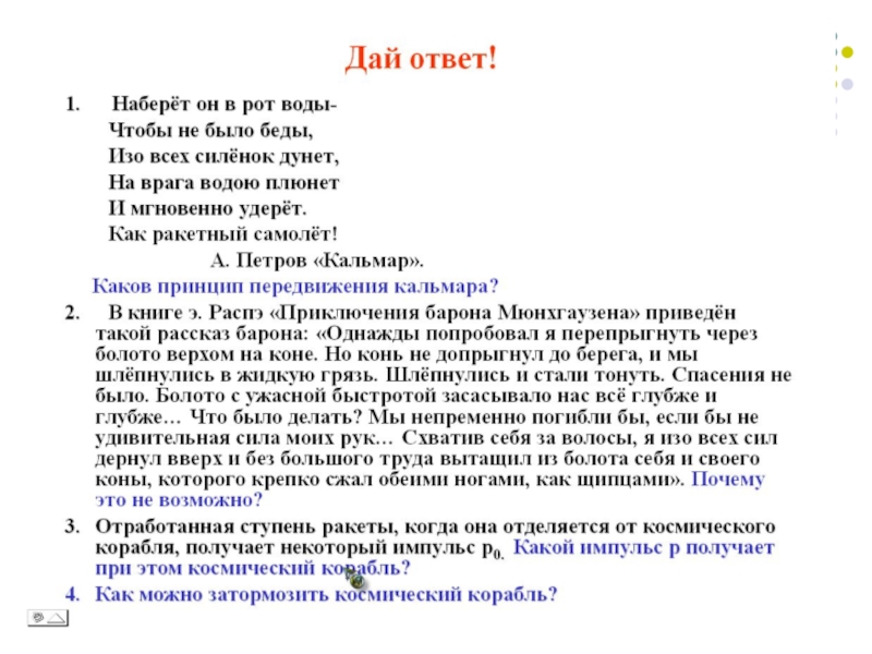Презентация, доклад Реактивное движение 9 класс