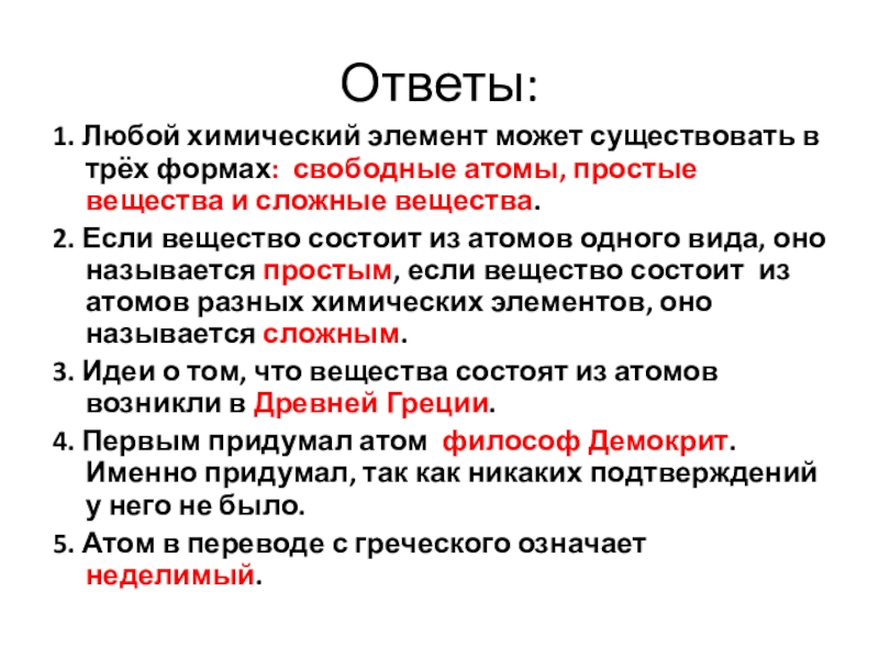1. Любой химический элемент может существовать в трёх формах ______________________________________