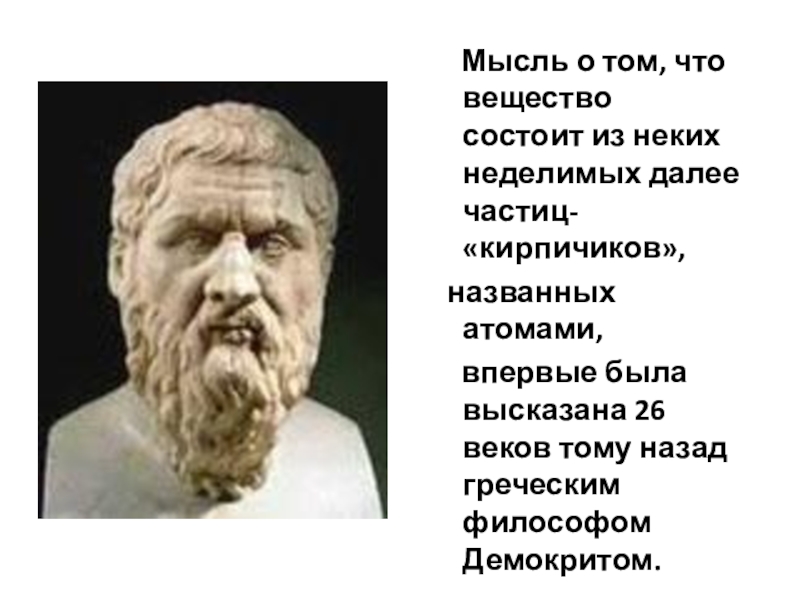 Слайд 10 Мысль о том, что вещество состоит из неких неделимых