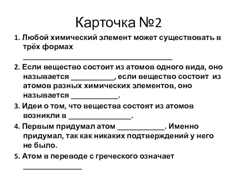 4. Первым придумал атом ____________. Именно придумал, так как никаких подтверждений у него не было.