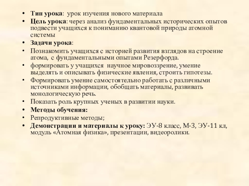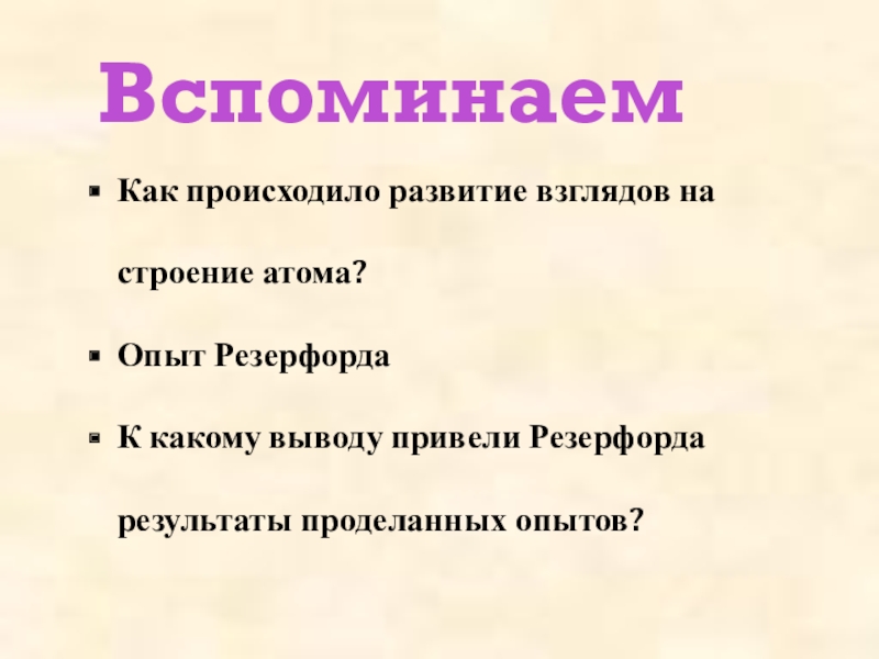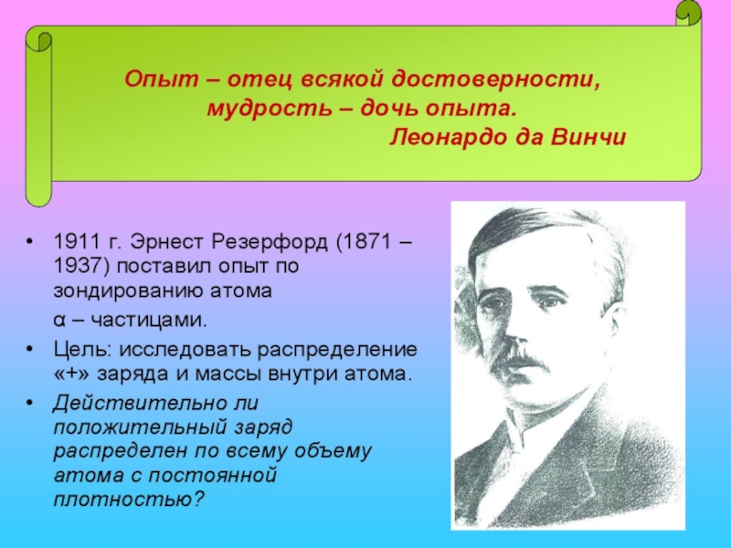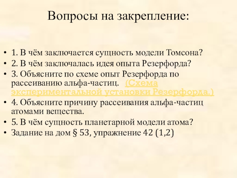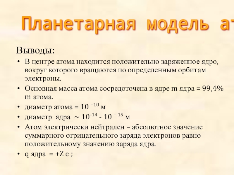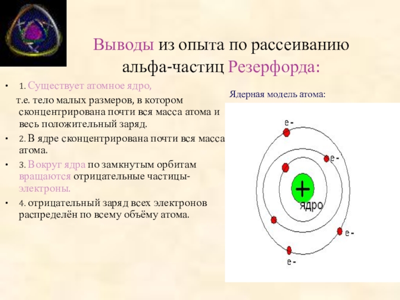 Тема урока: Опыт Резерфорда. Планетарная модель атома. Состав ядра.