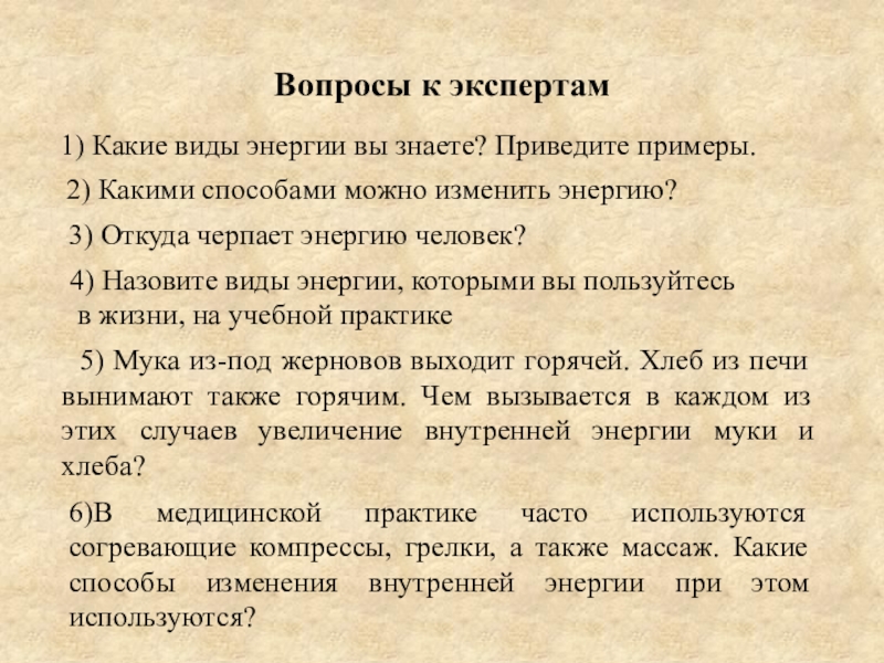 4) Назовите виды энергии, которыми вы пользуйтесь