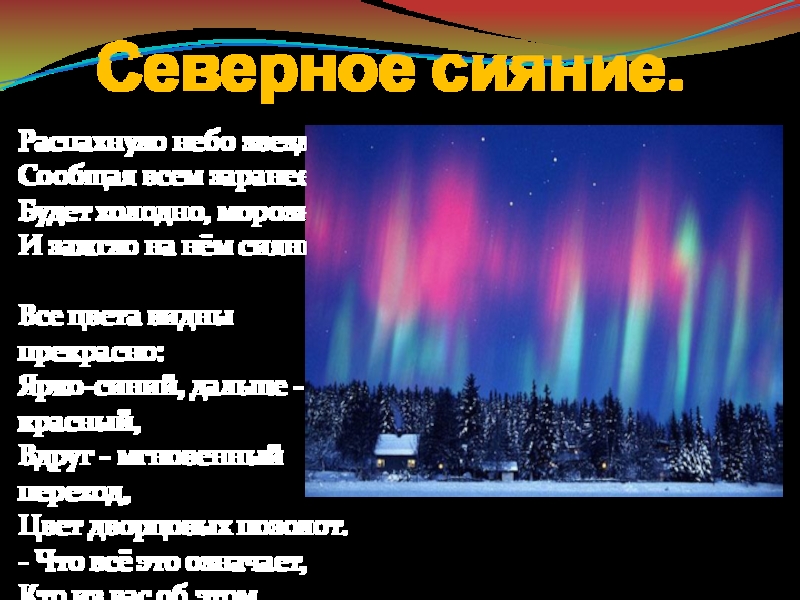 Слайд 12 Полярное сияние, или северное сияние, или южное сияние, или аврора-