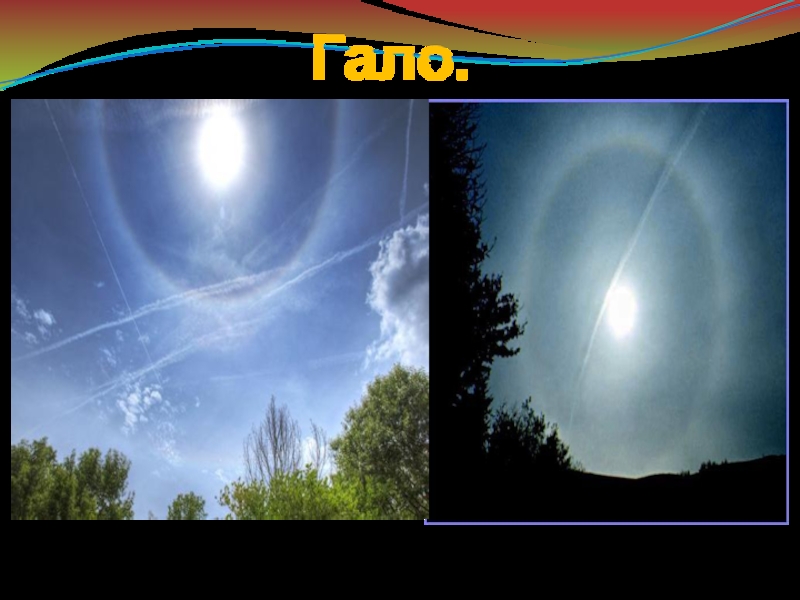 Слайд 17Гало - белые или радужные световые дуги и окружности вокруг диска