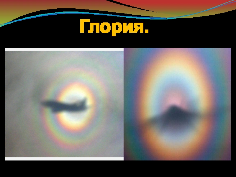Гло́рия- оптическое явление в облаках (лат. gloria — украшение; ореол).