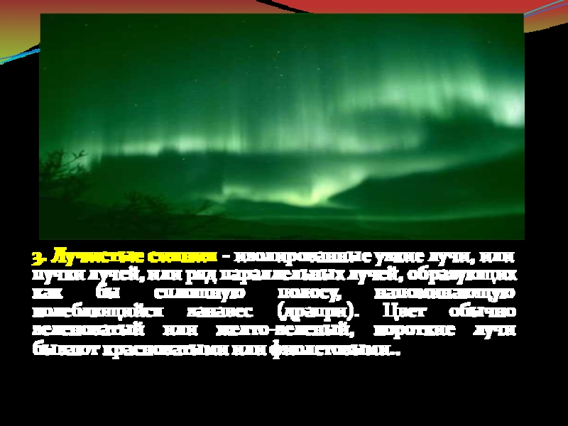 Слайд 153. Лучистые сияния - изолированные узкие лучи, или пучки лучей, или