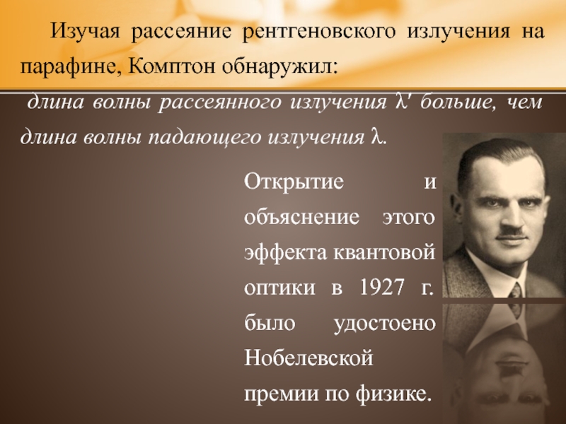 За открытие и теоретическое объяснение эффекта А Комптон удостоен в 1927 г. Нобелевской премии.