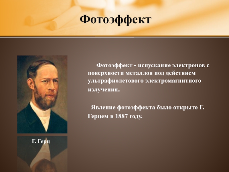 Явление фотоэффекта было открыто Г. Герцем в 1887 году.