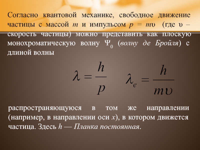 распространяющуюся в том же направлении (например, в направлении оси х), в котором движется частица. Здесь h — Планка постоянная.
