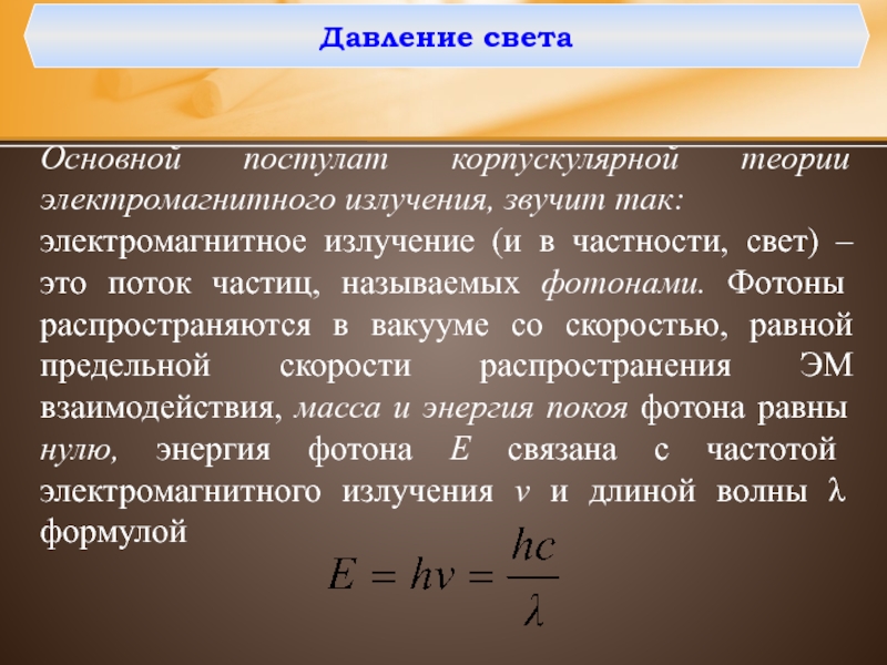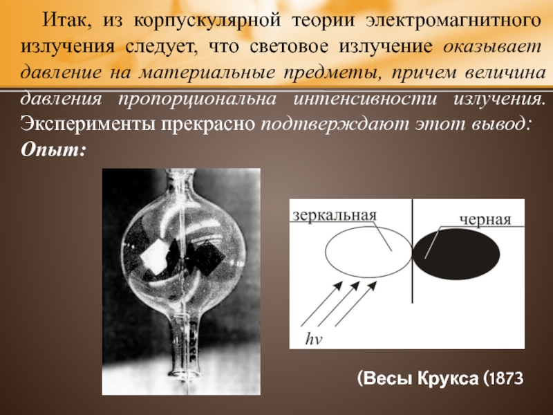 Слайд 23 Итак, из корпускулярной теории электромагнитного излучения следует, что световое излучение
