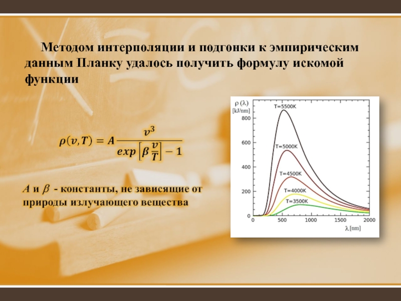 Методом интерполяции и подгонки к эмпирическим данным Планку удалось получить формулу