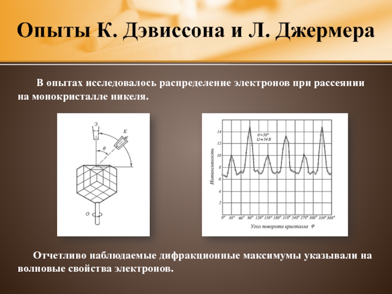Слайд 40Опыты К. Дэвиссона и Л. Джермера