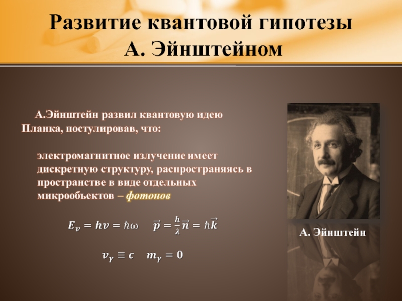 ГИПОТЕЗА ПЛАНКА И ЭЙНШТЕЙНА
