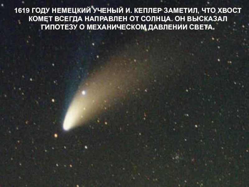 Слайд 171619 ГОДУ НЕМЕЦКИЙ УЧЕНЫЙ И. КЕПЛЕР ЗАМЕТИЛ, ЧТО ХВОСТ КОМЕТ ВСЕГДА