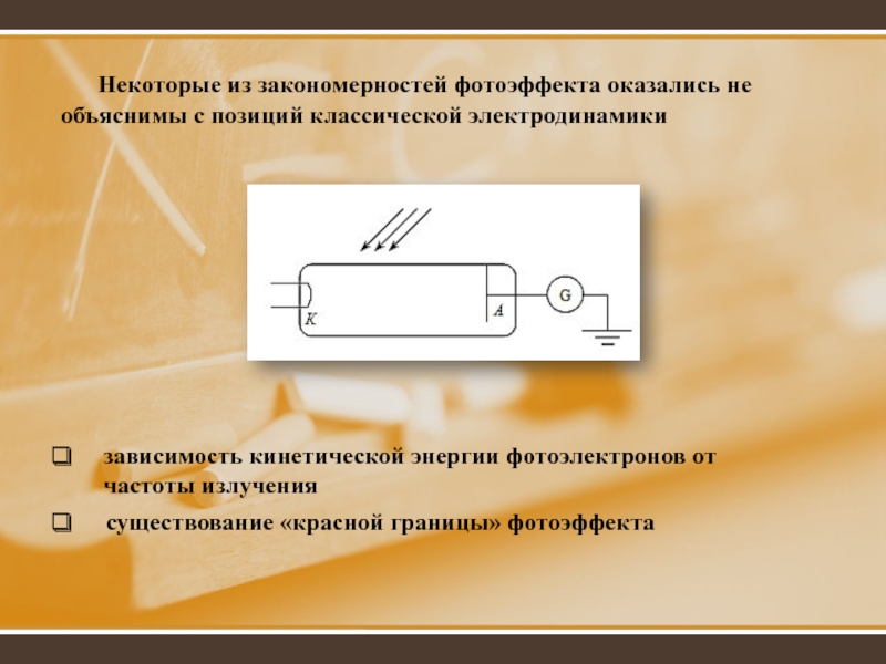 Некоторые из закономерностей фотоэффекта оказались не объяснимы с позиций классической электродинамики