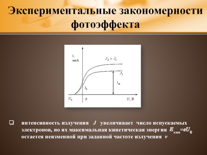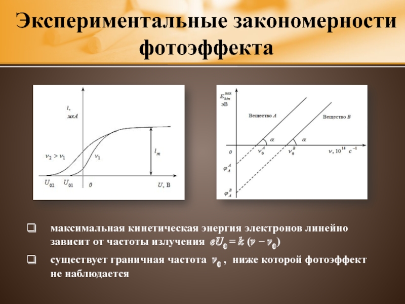 Слайд 12Экспериментальные закономерности фотоэффекта