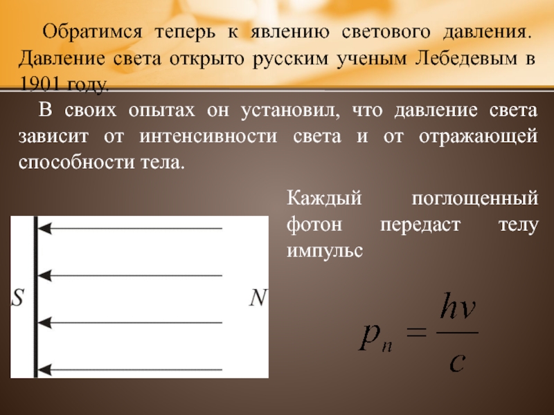 Слайд 22 Обратимся теперь к явлению светового давления. Давление света открыто русским
