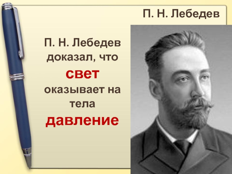 Слайд 20П. Н. Лебедев доказал, что свет оказывает на тела давление
