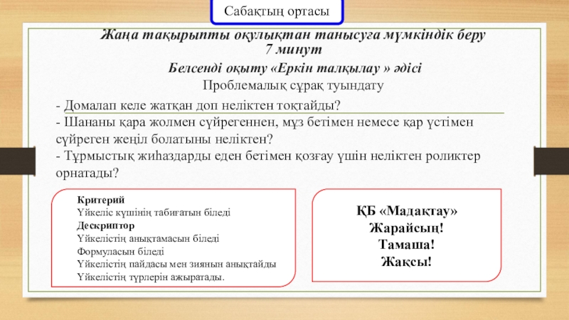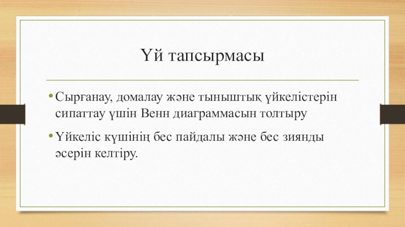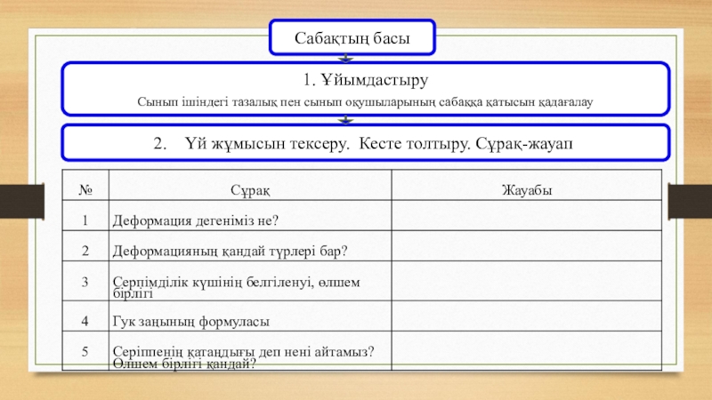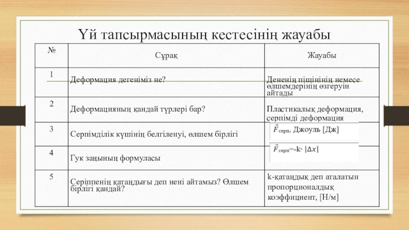 Үй жұмысын тексеру. Кесте толтыру. Сұрақ-жауап
