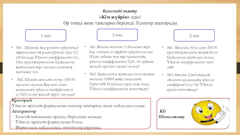 Үйкеліс күшінің формуласын есептер шығарған кезде пайдалана алады.