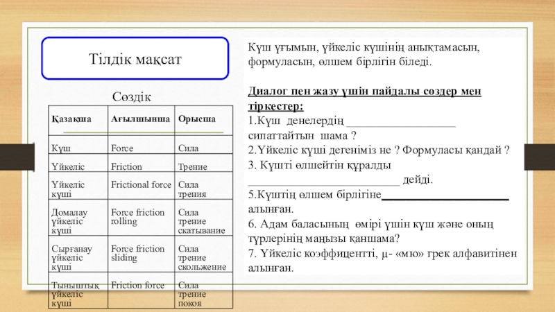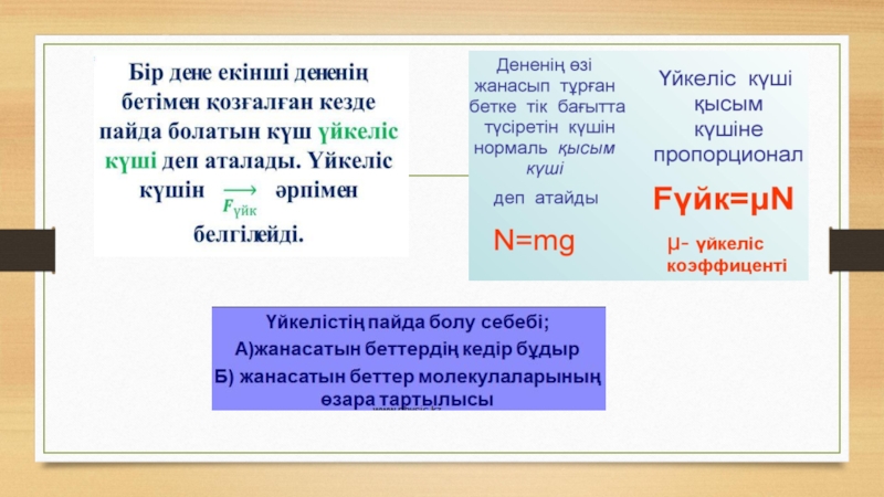 №2. Көлемі 0,5м3темірдің ағашпен арасындағы үйкеліс коэффицетті µ=0,6 Үйкеліс күшін есептеңдер?