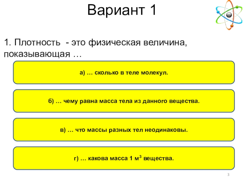 1. Плотность - это физическая величина, показывающая …