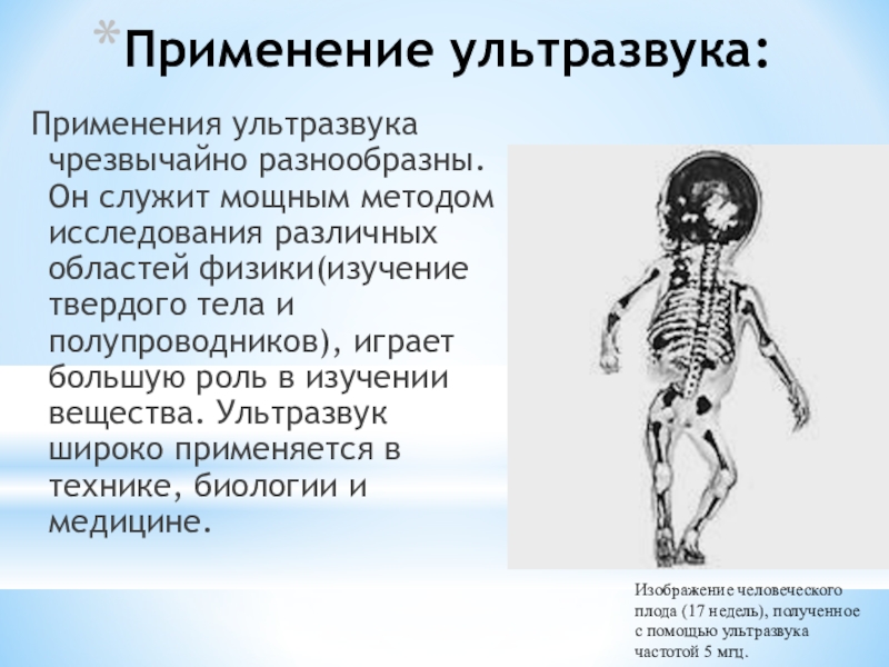 Изображение человеческого плода (17 недель), полученное с помощью ультразвука частотой 5 мгц.