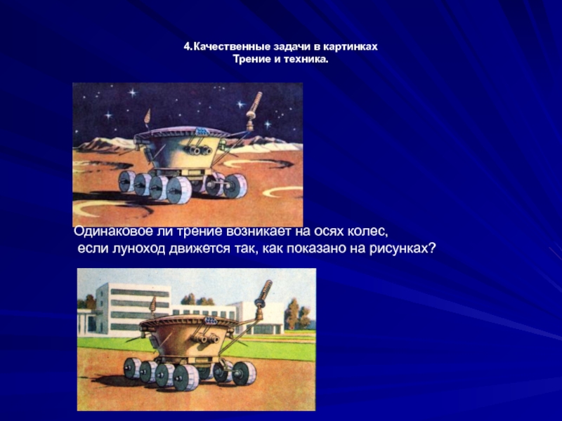 4.Качественные задачи в картинках Трение и техника.Одинаковое ли трение возникает на осях колес, если луноход движется так,