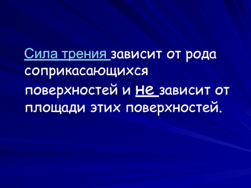 Слайд 14 Сила трения зависит от рода соприкасающихся поверхностей и не