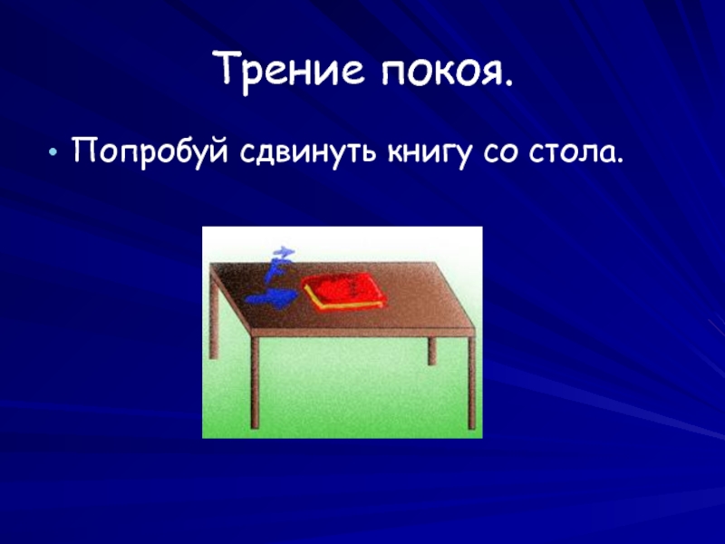 Трение покоя.Попробуй сдвинуть книгу со стола.