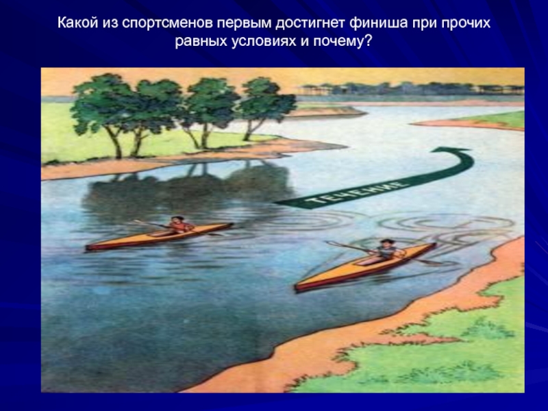 Слайд 24Какой из спортсменов первым достигнет финиша при прочих равных условиях и
