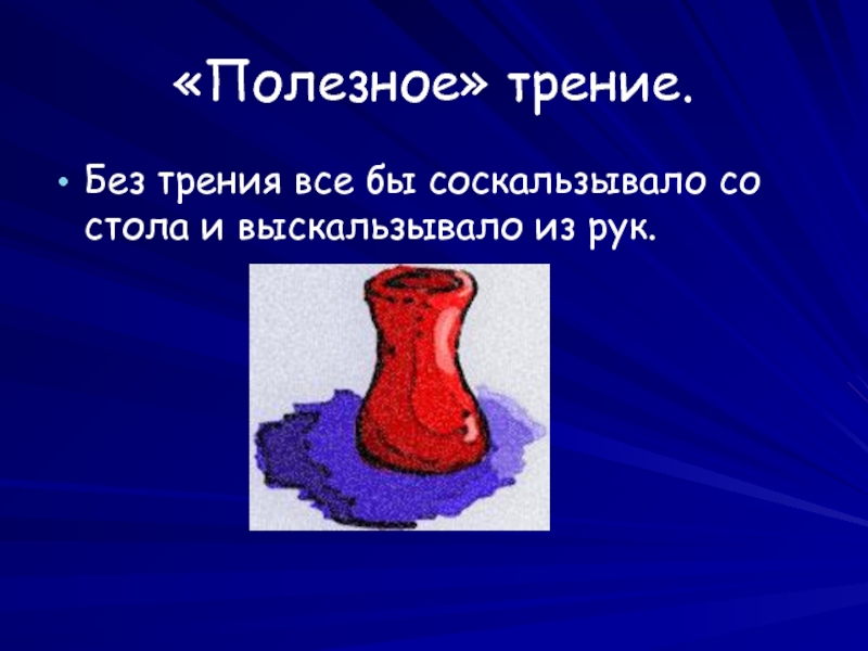 «Полезное» трение.Без трения все бы соскальзывало со стола и выскальзывало из рук.