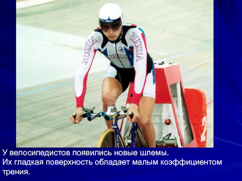 У велосипедистов появились новые шлемы. Их гладкая поверхность обладает малым коэффициентом трения.
