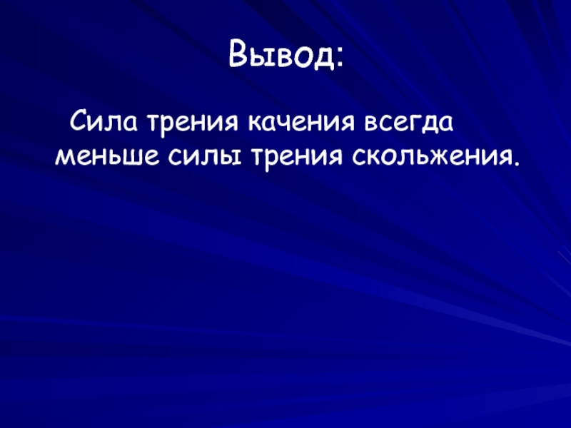 Вывод:   Сила трения качения всегда меньше силы трения скольжения.